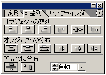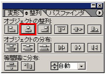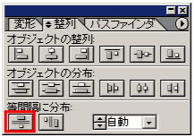 そして整列パレットの下のボタンを押します。これで等間隔に配置されます。