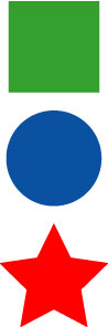 1.これらの図形を真横真ん中で等間隔に配置するには