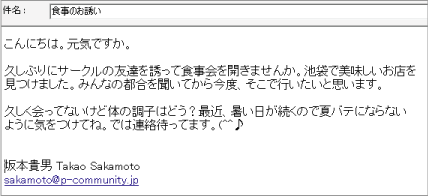 こんにちは。インストラクターの坂本です。読者の皆様は1日にどのくらいパソコンでメールを書きますか。今日は、OutlookExpressでのメール作成のポイントを話しますね。