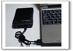 ところで読者の皆様は、パソコンのバックアップをしていますか。いつ何時、パソコンが壊れて貴重なデータがなくなってしまうか分かりません。そうなる前に日ごろからバックアップを心がけましょう!そうゆうことで今日は、ポータブルハードディスクのお話します。これは何かというと下の写真のようにパソコンにつなげるだけでデータをコピーすることができる優れモノなんです。これさえあれば、自分以外のパソコンに接続してもデータの作成や閲覧ができます。坂本が使っているのは、アイ・オー・データ機器から出ているHDPG-SU80K(K)です。これの評価はと言うと、○5つ中、○4つです。(^.^)