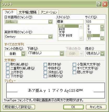 フォントウィンドウが表示されます。これで文字を赤に設定します。