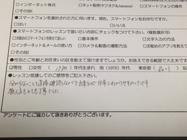 「いつもとても丁寧に教えて頂いてありがとうございます。