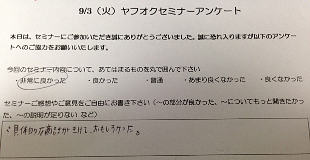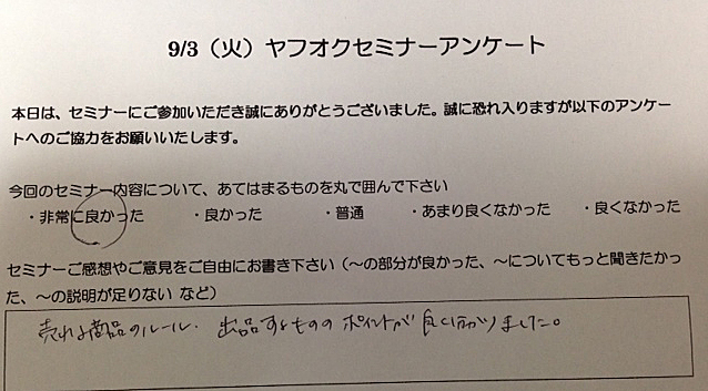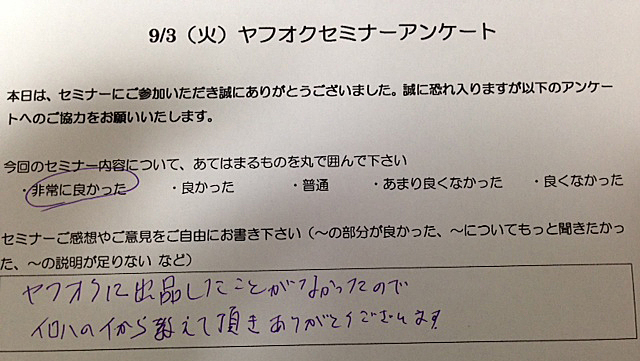 9月に開催されたヤフオクセミナーを受講されたすべての生徒様からお褒めの言葉を頂きました!