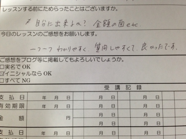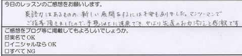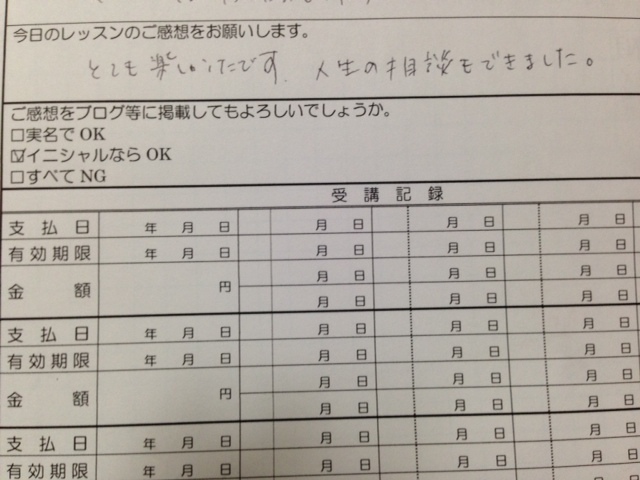 嬉しいことに坂本のレッスンを受講されている生徒様からご感想を頂いております。