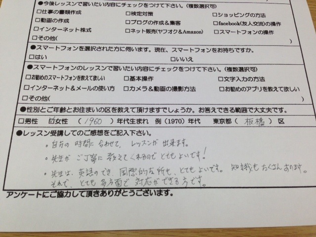 レッスンを受講された方から感想を頂いております!(eBay ヤフオク パソコン教室 )