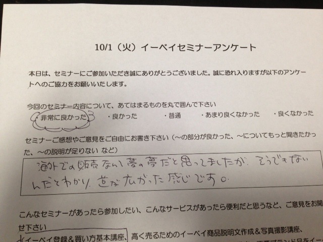 eBayでのリサーチや売買のやり方が分かって、とても良かった