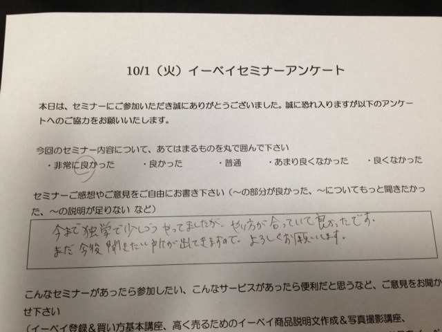ヤフオクで注目される写真撮影&商品説明文の書き方3時間講座を受講されている方の感想です。