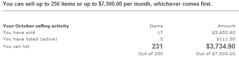 その結果、評価が60になり、出品数250、取引総額$7500までに上がりました!